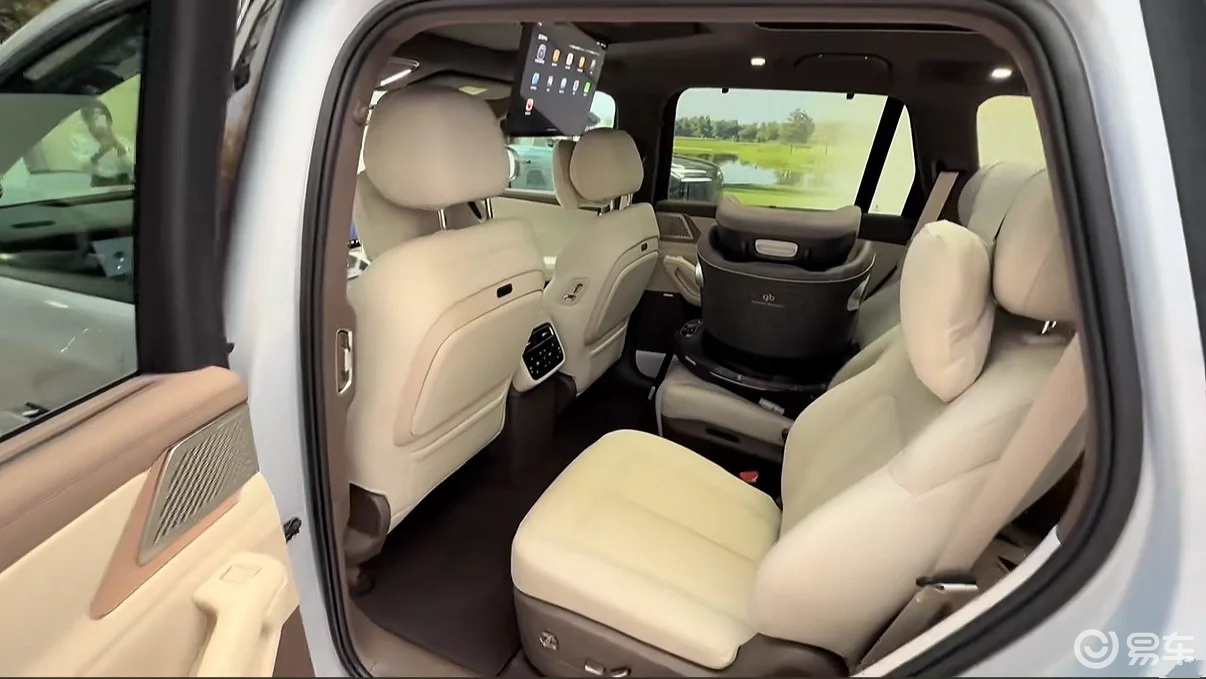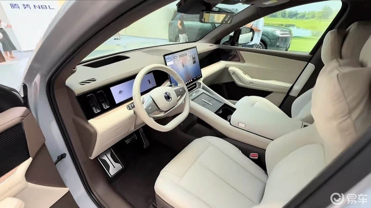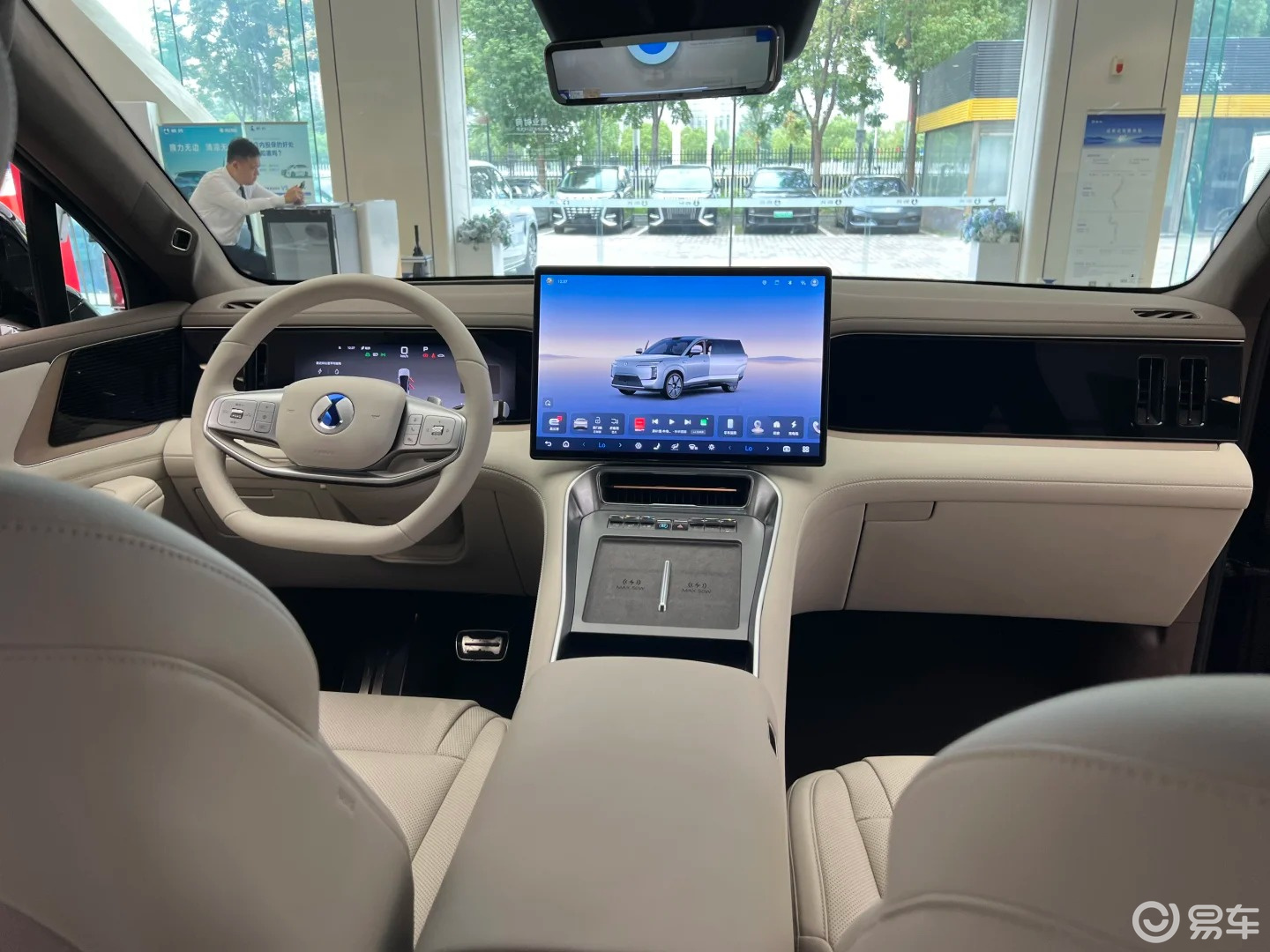 在内饰方面,我们可以看到新车采用的是家族化的设计语言打造,它的设计非常简约化,采用的是两幅方向盘,中间采用的是悬浮式的大屏,新车的副驾驶的一侧还有大屏的配置,整个中控台采用的是极简化的效果。此外,新车采用的是2+2+2的座椅布局,冰箱、彩电、大沙发、小桌板它全部都有,可以带来领先的体验。并且,腾势N8L还有易三方技术,再加上它有云辇底盘,后轮有独立转向,可以带来很大的便利性,转弯半径小,而且在极窄的车位易于停车。在动力方面,新车搭载的是2.0T的发动机和三电机的组合,电机综合最大输出达到了762马力,2.0T发动机最大输出207马力,整体表现很强悍。