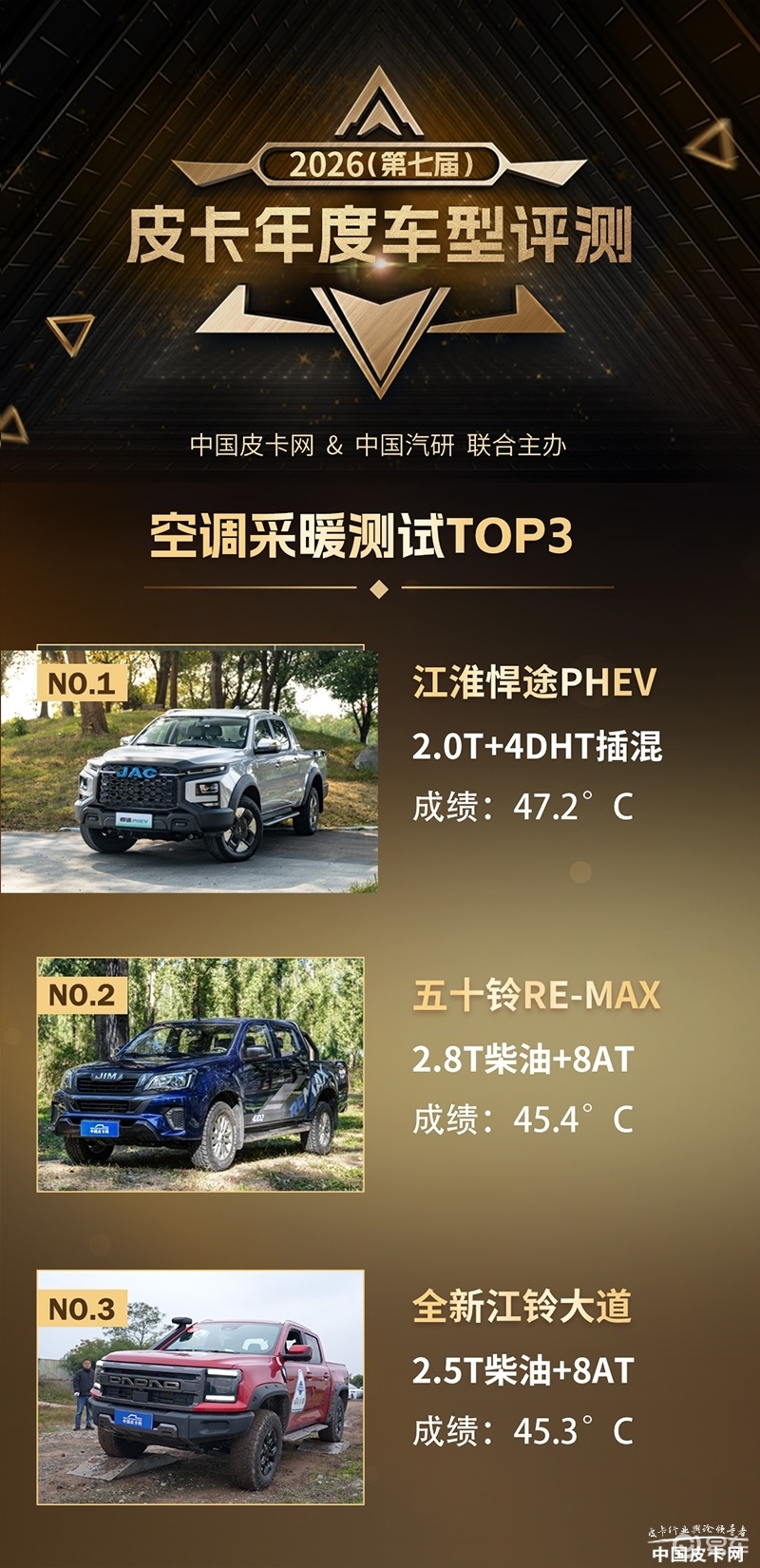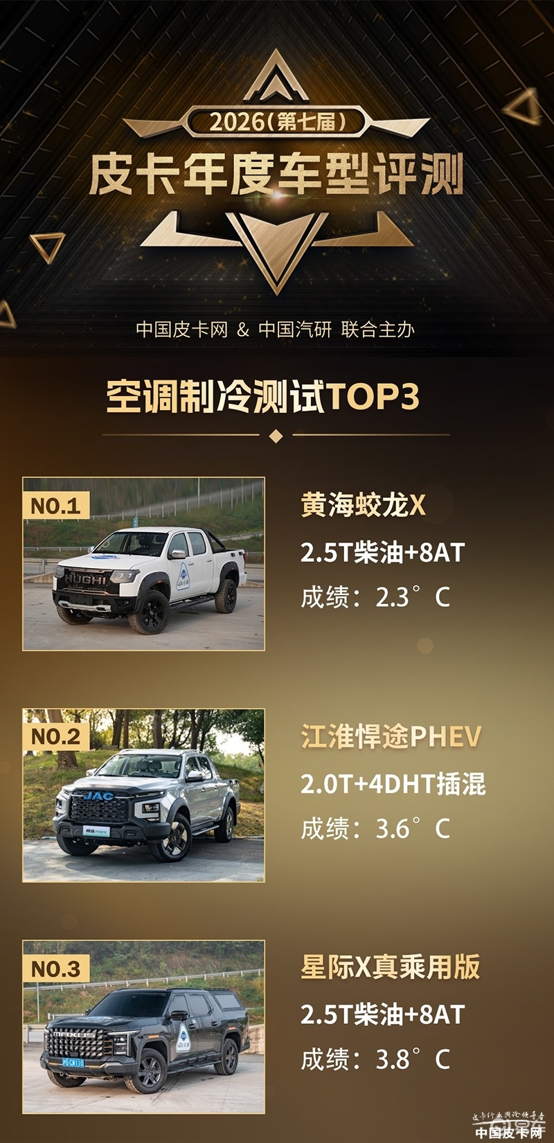 注:2026年度皮卡车型评测共有9大品牌11款车型参与角逐。本文上榜车型为各单项评测中的前三名。然而尽管排名存在先后,但所有入围车型均代表了中国皮卡在该细分领域的顶尖水准,值得每一位皮卡爱好者与购车者关注。