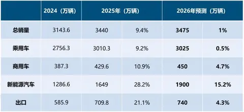 中汽协预测,2026年我国汽车市场总销量有望达3475万辆,新能源汽车总销量有望达1900万辆。