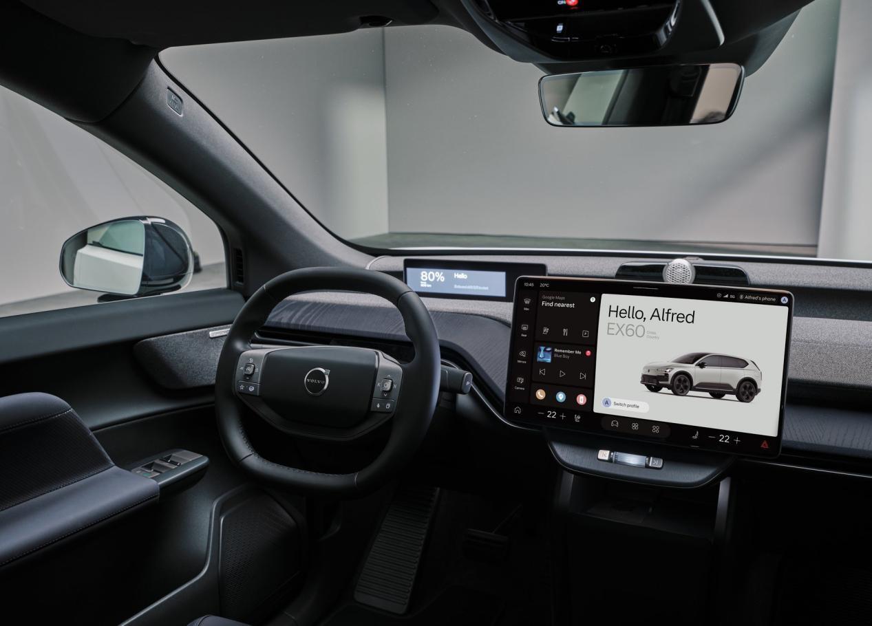 液晶仪表是窄条设计,远离方向盘,中控屏尺寸较大,悬浮样式,海外版本的界面只能说是比较简洁,美观度上一般,内置谷歌Gemini人工智能助手,智能化表现对比以往油车肯定有大幅提升,但要是跟国内的智能车机相比,估计还有优化空间。