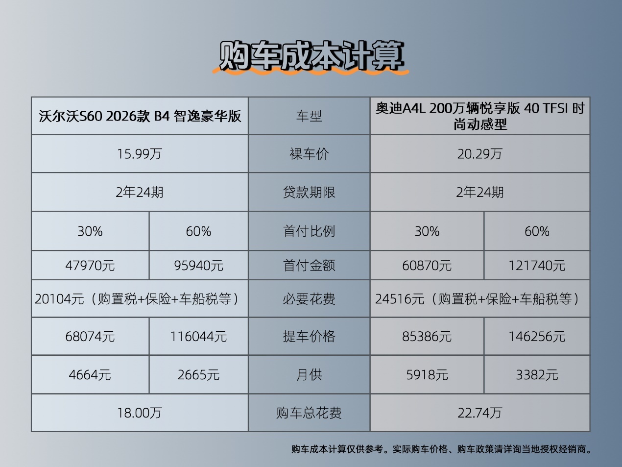 两种方案,S60购车成本一目了然