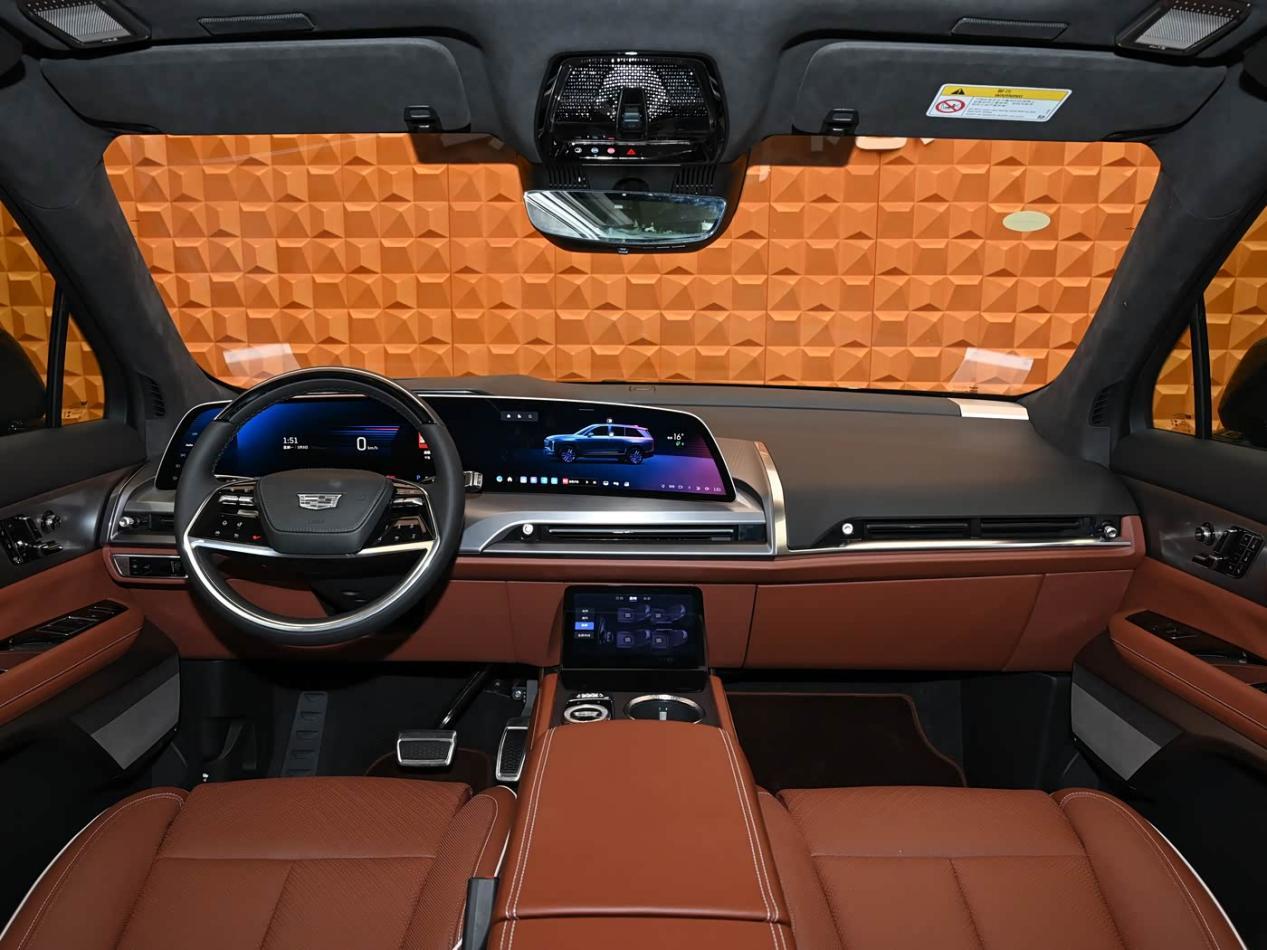外观方面,凯威德延续了凯迪拉克纯电家族的设计语言,整体风格硬朗且具有辨识度。前脸采用大尺寸封闭式黑晶光曜格栅,配合直列式流光前大灯,并且充满了品牌一贯的钻石切割元素。车侧线条平直舒展,并没有采用过于复杂的腰线设计,但凭借庞大的车身轮廓营造出较强的气场。车尾延续了竖向排灯的设计风格,与头灯形成呼应。细节方面,凯威德将激光雷达隐藏在前风挡玻璃上沿,而不是像部分车型那样在车顶加装“犄角”,这种设计方式让车顶线条保持平整。