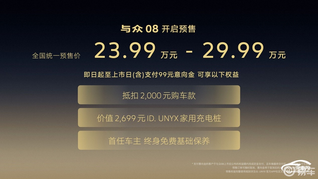 据悉,与众08是大众汽车与小鹏汽车联合开发的首款车型,也是金标大众家族的首款旗舰产品。大众汽车乘用车品牌中国CEO齐泽凯表示,与众08是大众汽车积极聆听中国客户声音、以‘中国速度’响应市场需求的直接成果,以先锋前卫的设计、领先的智能科技及标杆级的驾驶性能,成为大众汽车史上最大规模产品攻势的先锋力量。