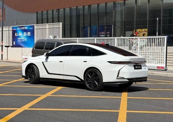 车身侧面,其翼子板和侧裙处的双色设计增添了些许动感。车尾配备了贯穿式灯带和可发光的品牌LOGO。尺寸方面,混动版长宽高为5140/1920/1555mm,轴距达到2950mm。